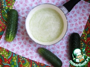 Такое количество сока получается из 3 небольших или 2 больших огурцов. Главное, чтобы структура была более или менее гомогенная и без семечек.