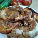 Подавать с квашеной капусточкой ( к сожалению, у меня её не оказалось), малосольными огурчиками, отварной картошечкой и бокальчик пива можно добавить для натюрморта :) Приятного аппетита!