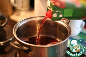 Выльем сок в кастрюлю и доведем до кипения.