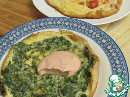 Готовый зеленый омлет выложить на тарелку. Так же жарить второй корж.