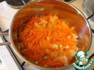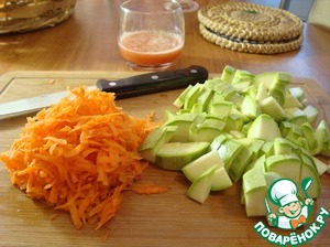 Морковь натираем на средней тёрке, кабачок режем кубиком.