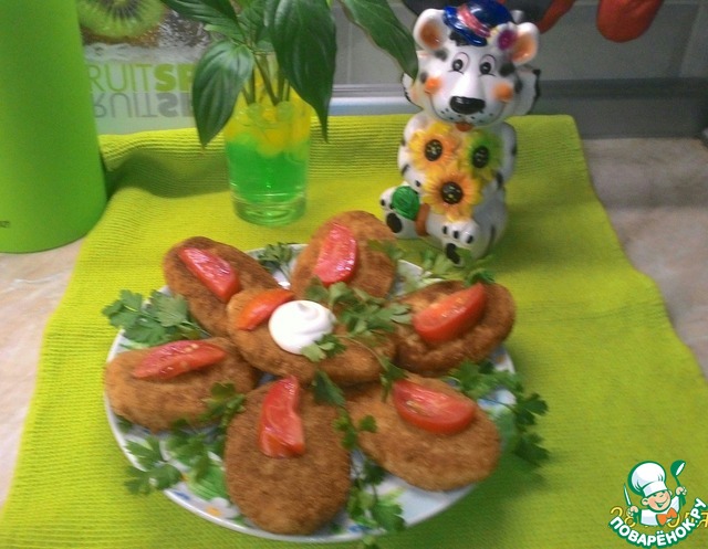 Сформировать зразы, хорошо запанировать и обжарить на растительном масле до образования румяной корочки.