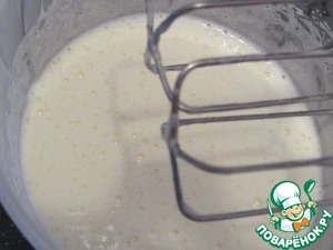 Добавить ванилин (ванильный сахар), разрыхлитель, перемешать. Добавить муку и перемешать при помощи миксера.