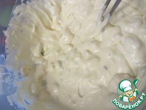 Творог и размягченное сливочное масло тщательно смешать в отдельной посуде. Добавить к яично-сахарной смеси и хорошо перемешать.