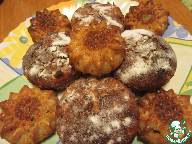 Разложить по формочкам, на 1/4 не доходя до краёв. У меня силиконовые формочки, их достаточно сбрызнуть водой перед закладкой теста, если используются другие, то их нужно предварительно смазать растительным маслом.