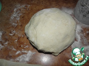 Смешать все ингредиенты. Муки давать постепенно, тесто должно быть мягким.