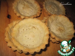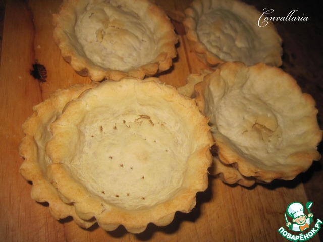 Сделав вилкой наколы в каждой заготовке в нескольких местах, запекать тарталетки в разогретой до 180° духовке примерно 15 минут до золотистости.