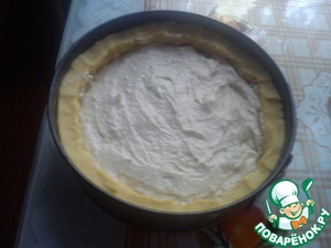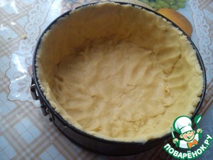 Для нашей "корочки" тесто выкладываем в форму, образуя бортики, и ставим в холодильник на 20 минут