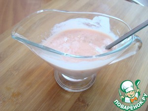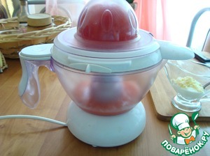 Чеснок добавила к йогурту и налила сока свежевыжатого.