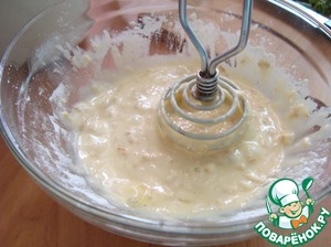 Добавляем муку смешанную с разрыхлителем (я не клала разрыхлитель). Замешиваем тесто.