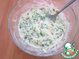 Кабачок трём на средней тёрке, петрушку мелко рубим. Отправляем в тесто.
