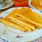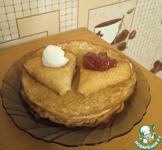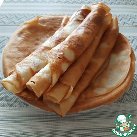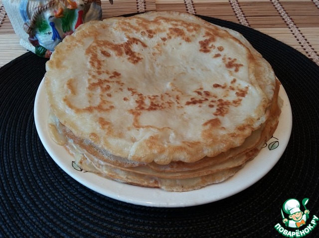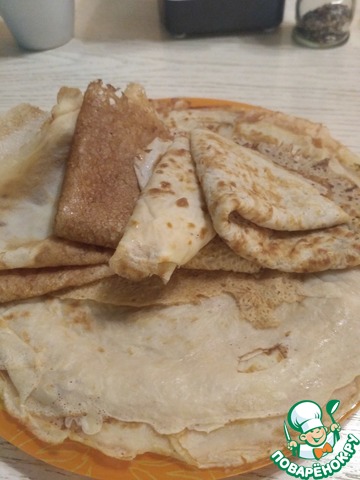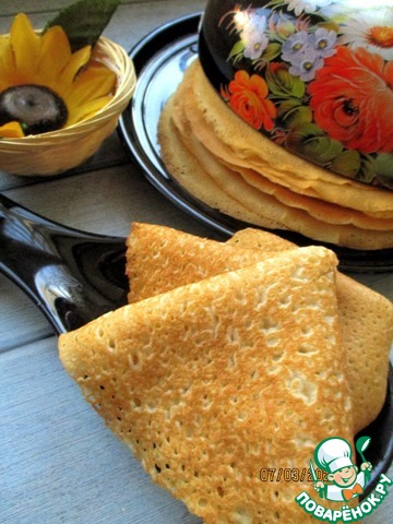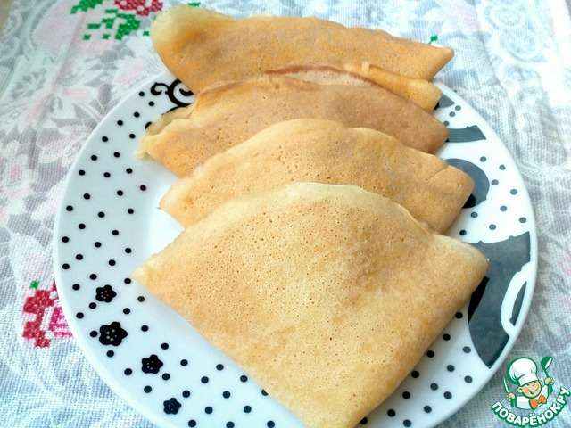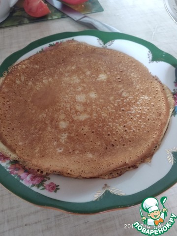 Сковороду хорошо нагреть, смазать маслом (можно не смазывать) и выпечь блины (1-2 минуты с одной стороны, перевернуть и 1-2 минуты с другой стороны)