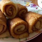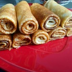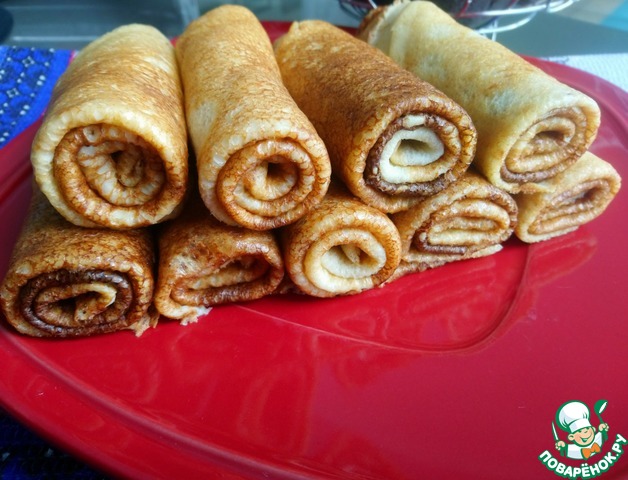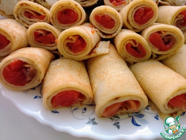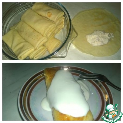 Как только начинка остынет, фаршируем блины (на блин кладем начинку и сворачиваем конвертиком)