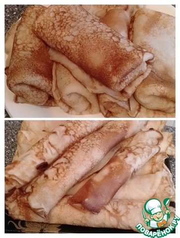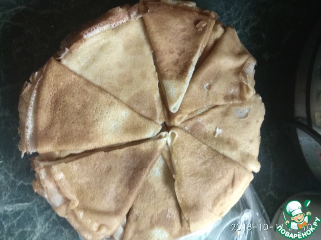 Сложить блины стопкой, смазывая каждый блин сливочным маслом -