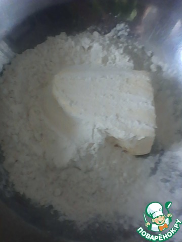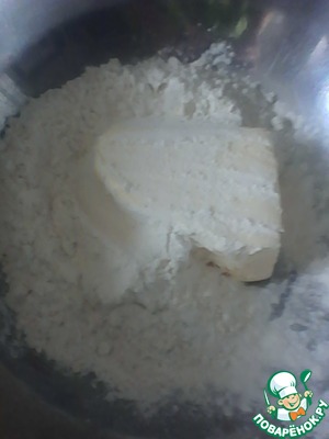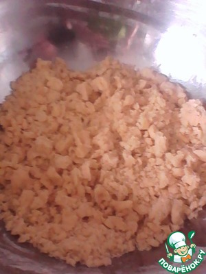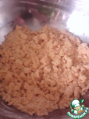 • Муку разотрите с маргарином до консистенции, напоминающей хлебные крошки