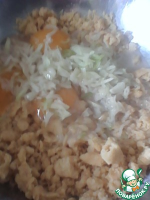• Добавить разведённые в теплом молоке дрожжи, яйца, соль и лук