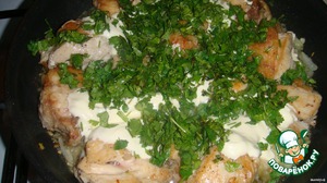 Посыпать рубленной зеленью, накрыть крышкой и тушить на медленном огне минут 10-15