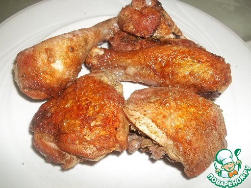 Так же можно приготовить и курицу, разделанную на порционные куски. Курицу мариновать так же, только жарить курицу нужно в большем количестве раст. масла, не менее 1/2 стакана, на среднем огне до румяной корочки со всех сторон, не закрывая крышкой. В этом случае остатки маринада и лук не добавлять, а использовать для приготовления соуса.