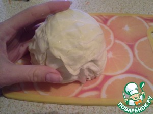 Замешиваем тесто. Наливаем в миску масло и кипяток, добавляем соль, всыпаем муку и быстро перемешиваем. Затем тесто нужно вымесить руками до однородного состояния. Оно должно быть гладким, не липнуть к рукам.