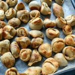 Выкладываем кундюмы на пергамент и запекаем в духовке при 200 градусах в течение 20 минут. Внешний вид практически не меняется))