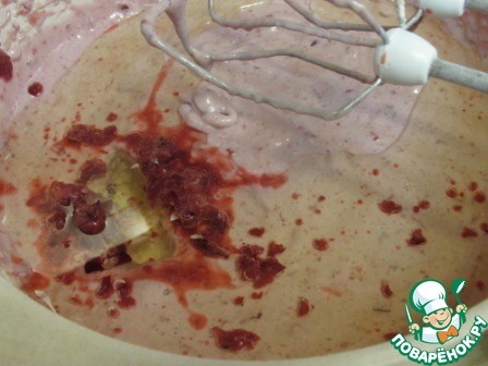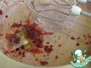 • Добавить просеянную муку с разрыхлителем, пюре из вишни и масло. Перемешать.