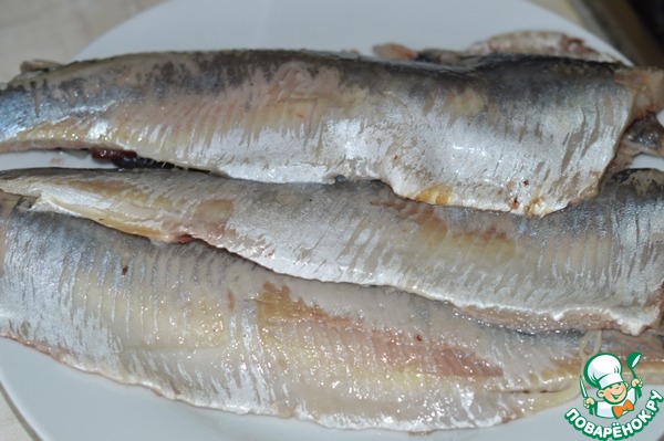 1. Сельдь почистить, удалить кости, нарезать ломтиками.