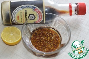 2. Для заправки смешать соевый соус, масло, горчицу и лимонный сок.