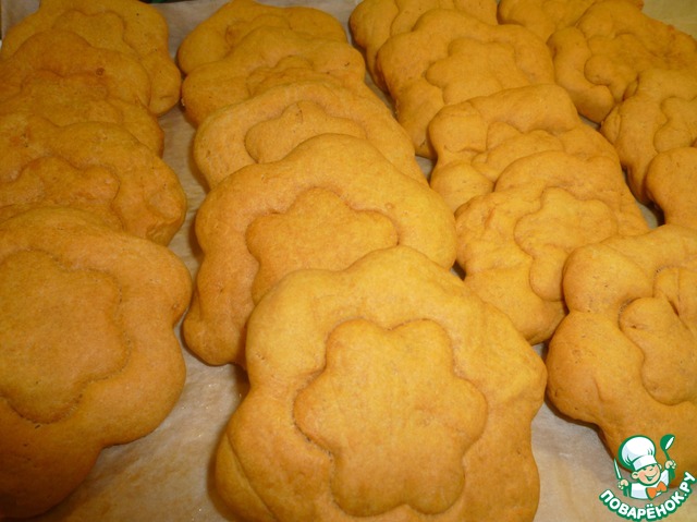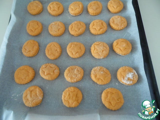 Раскатать не тонко, на посыпанной мукой поверхности. Вырезать формочкой кружочки, и запекать 12-15 мин. при температуре 180 гр.