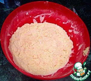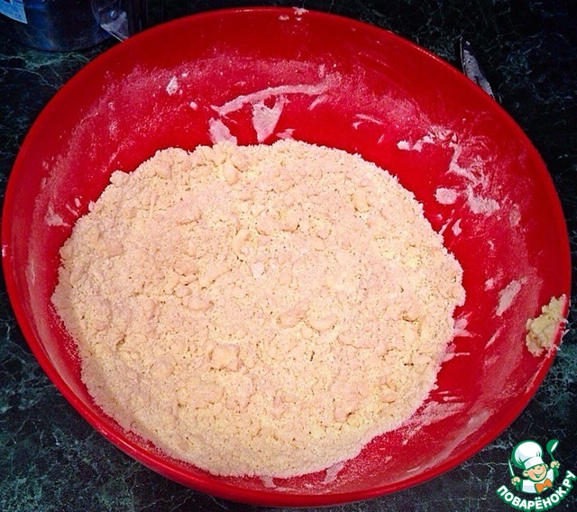 Холодное масло соединить с просеянной мукой, быстро растереть до образования крошки.
