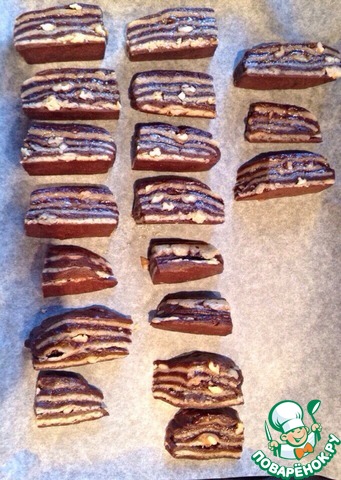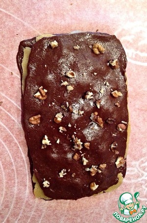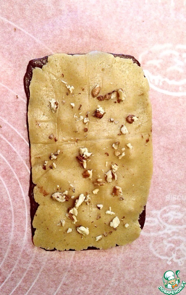 Каждую часть раскататываем в прямоугольник примерно 11*18 см. Лучше это делать между листами пергаментной бумаги. Я взяла сначала большой лист бумаги, на него выкладывала слой за слоем. А каждый слой расскатывала между двумя маленькими листами, потом верхний снимала, переворачивала лист с тестом и укладывала на общую стопочку, затем аккуратно снимала нижний лист. Фух, не знаю, смогла ли понятно объяснить, но как то так. Тут главное - приноровиться.
