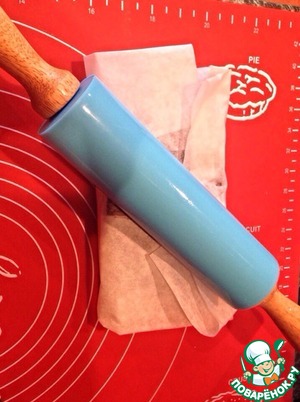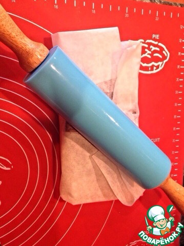 Теперь надо завернуть все в пергаментную бумагу и пройтись сверху скалкой, немного прижимая слои.
