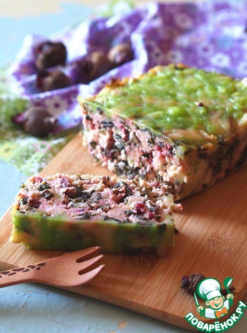 Катюшенька, несу свою запеканочку со свекольной ботвой. Очень интересный, необычный вкус, хорошо "слышно" чесночок, очень вкусная в холодном виде. Муж так вообще -сильно нахваливал и добавки подкладывал. Я и черешки не выкинула, тоже добавила к творогу, а сверху посыпала зеленым сыром(нашелся у меня в холодильнике масенький кусочек такого яркого сырка). Огромное спасибо за такую вкусную несладкую творожную выпечку!