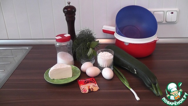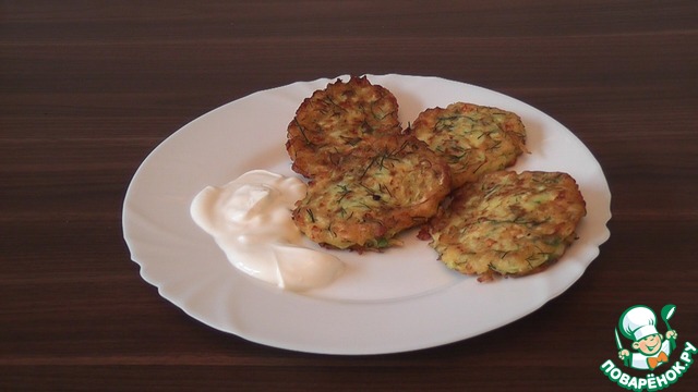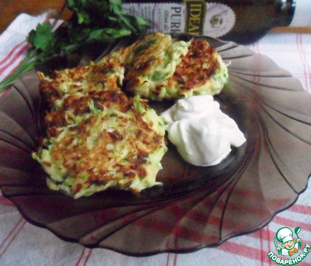Ингредиенты для «Оладьи из кабачков по-турецки»: