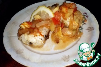 Данный рецепт я увидела по телевизору. И так он меня взял своей необычностью!!! Мне очень захотелось попробовать этот соус! Который оказался очень ароматный и абсолютно ни на что не похожий! А рыба именно Над соусом... В этом её суть!