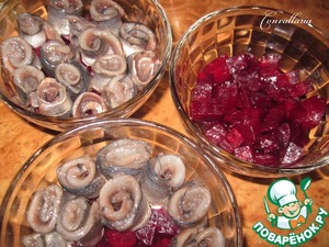Ингредиенты для «Салат из кильки с яблоком и свеклой»: