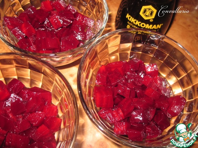 Так это не страшноЯ свеклу перед добавлением в салаты где нужно всё перемешивать,отдельно немного заправляю подсолнечным маслом-тогда она не так окрашивает все остальные ингредиенты.Спасибо за рецепт!