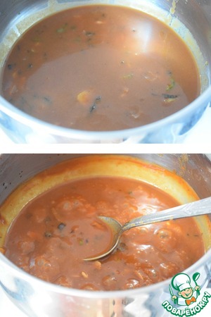 Пока обжариваются крылья, соус, в котором они мариновались выливаем в кастрюлю, на медленном огне доводим до кипения и варим 5-10 мин. постоянно мешая.