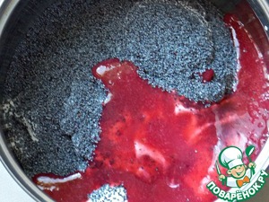 Из смородины выжить сок, смешать его со сметаной, сахаром, яйцом и маком.
