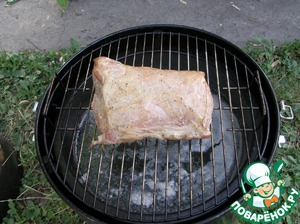 Подготавливаем коптильню и закладываем мясо. Коптим 120-140 минут.