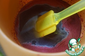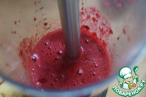 Для мусса: вишню пробить блендером и протереть через мелкое сито или использовать соковыжималку для ягод. У нас получится вишневый сок. Добавить к нему сахар и размешать чтобы он растворился.