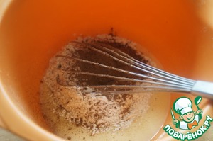 Сливочное масло растопить и влить в растертые яичные желтки. Добавить муку и какао-порошок, хорошо вымешать. Тесто получится достаточно густое.