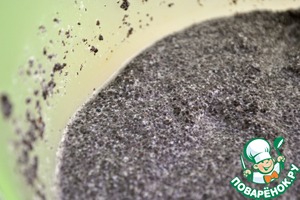 3. Пока тесто греется и подходит, готовим начинку. Мак перемолоть в кофемолке и залить его кипятком так, чтобы вода едва покрывала мак. Не забудьте помешать мак с водой, скорее всего, нужно будет подлить еще.