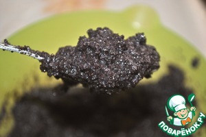 4. Когда мак набухнет, примерно через полчаса, добавить сахар. Попробуйте начинку, т. к., возможно, вам захочется послаще. Масса немного разжижится.