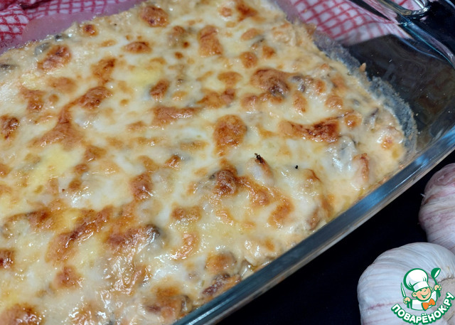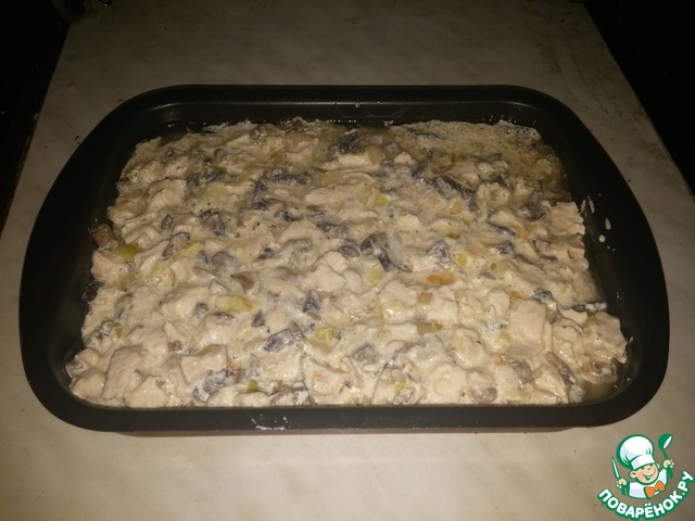 Надо автору предложить назвать по-другому--к примеру--Курица с грибами под сырной корочкой )
