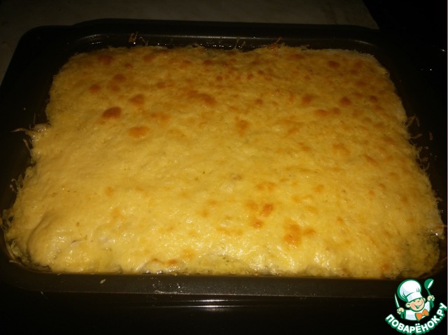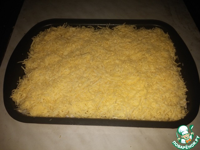 Посыпаем сыром наш жюльен и отправляем в разогретую до 180 град. духовку на 20-25 минут.