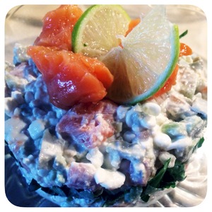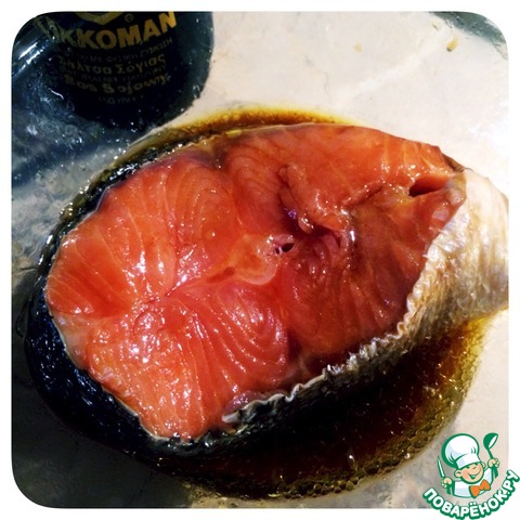 Сам маринад готовится так: выжимаем сок половины лайма, добавляем соевый соус (конечно же лучше Kikkoman)), оливковое масло. Заливаем рыбу и оставляем мариноваться в холодильнике.