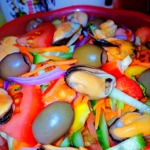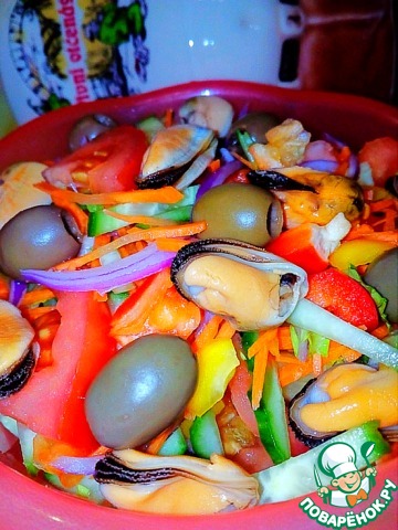 Салат из овощей с мидиями