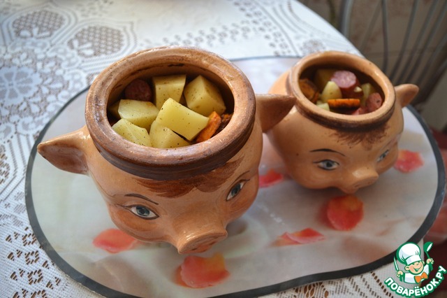 Рецепт «Картошка с охотничьими колбасками в горшочках»: