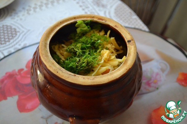 Поставить в разогретую духовку до 180-200 градусов на 45 минут. После этого вытащить из духовки, посыпать сыром и зеленью, и поставить в духовку снова минут на 5-10.