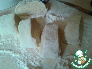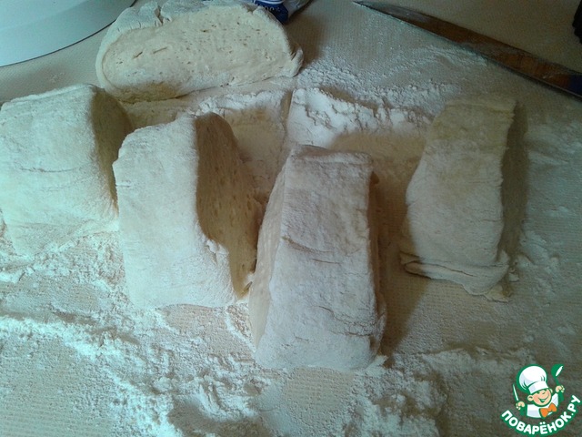 Подошедшее тесто делим на 6 частей (в зависимости от размера получается 5-7 пенирли).